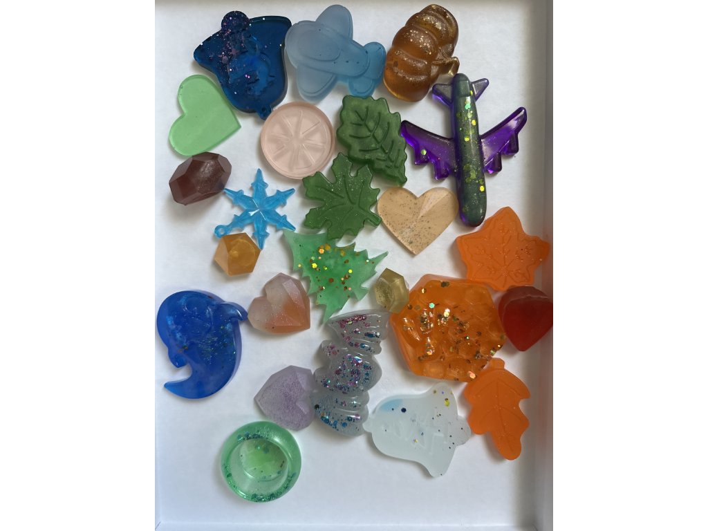 Produkty z pryskyřice: Tyto produkty jsou ručně odlévány z pryskyřice vhodné pro kontakt s potravinami, což znamená, že jsou bezpečné i pro děti, které mají tendenci strkat předměty do pusy. Pryskyřičné doplňky mají jedinečnou texturu a jsou ideální pro smyslové hry, které rozvíjejí hmat, zrak i zvukové vnímání. Jsou skvélé pro třídění, objevování tvarů a barev a podporují zvídavost dětí.