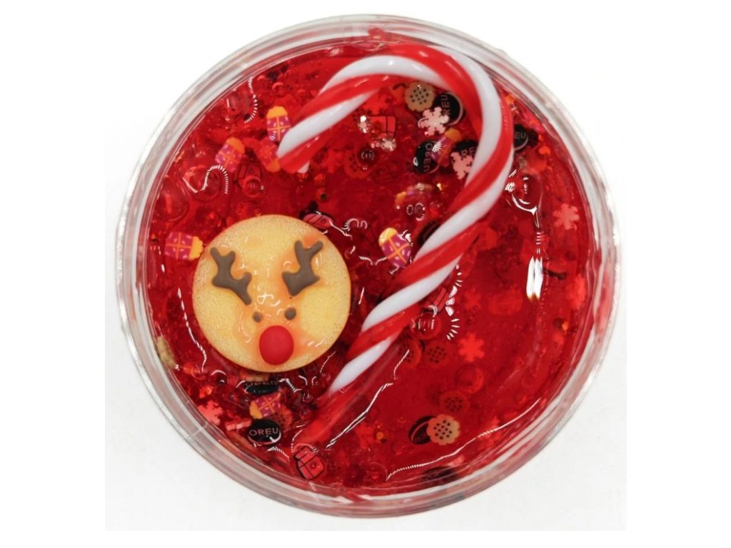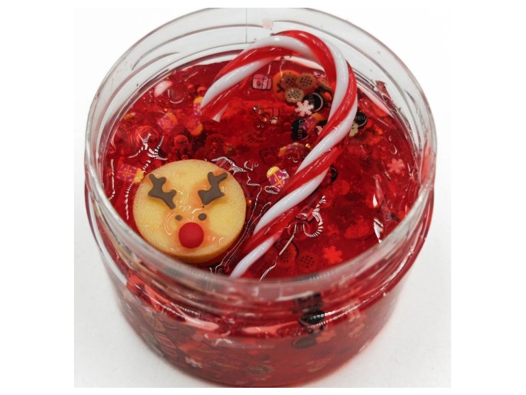 150g gelového slizu, konfety, třpytky, plastové kuličky, 2 ks dekorace - vánočního cukroví, cukrová hůlka.