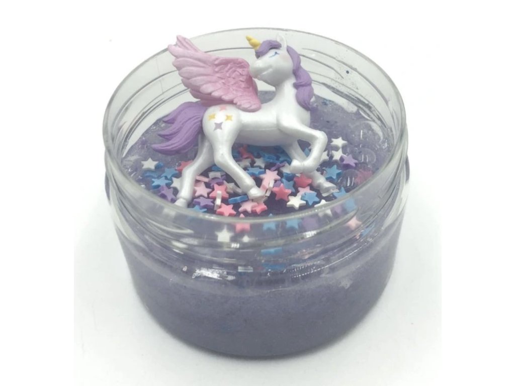 Kdo by nemiloval jednorožce?! Náš nový fialový gumový slizáček se krásně natahuje, takže se jednoróža může proletět na vesmírné dráze.