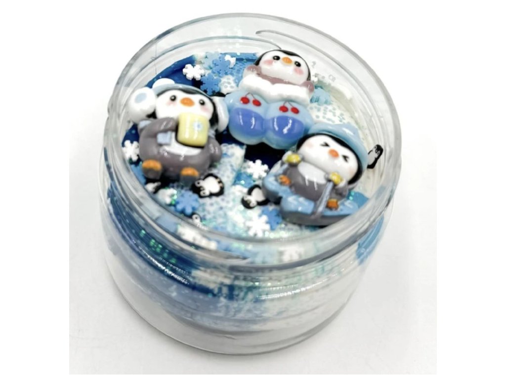 125g domácí modelíny tří barev, třpytky, konfety, tučňáčci 3ks