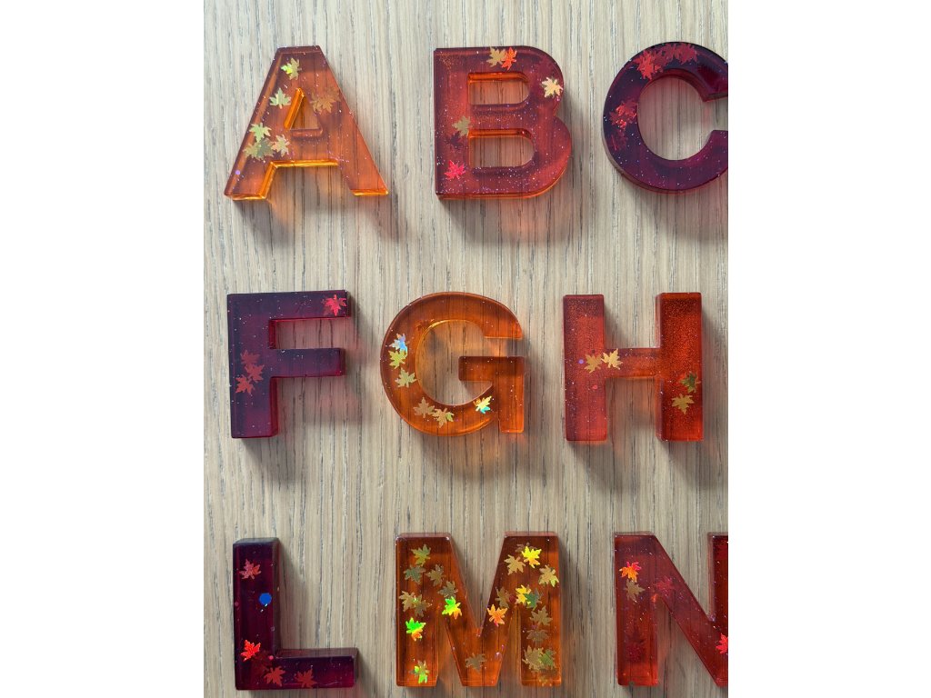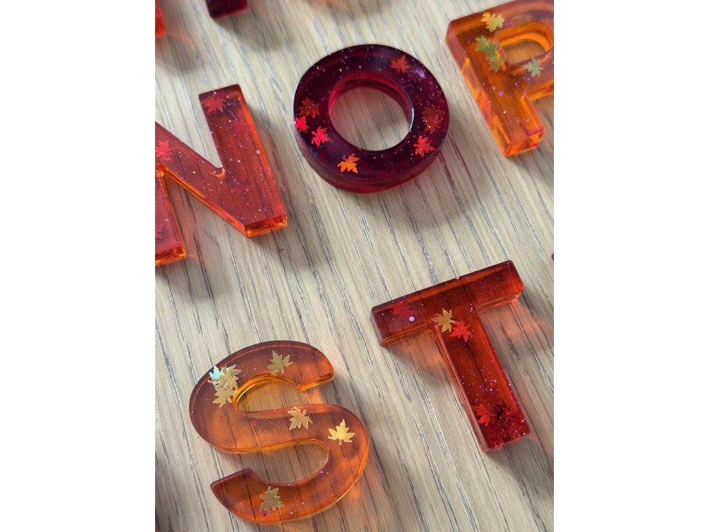 Celý set je sladěn do podzimních barev, jednotlivé písmenka mají různé odstíny od dané barvy nebo barvy podobné, k barvě setu se hodící. Co set to originál.