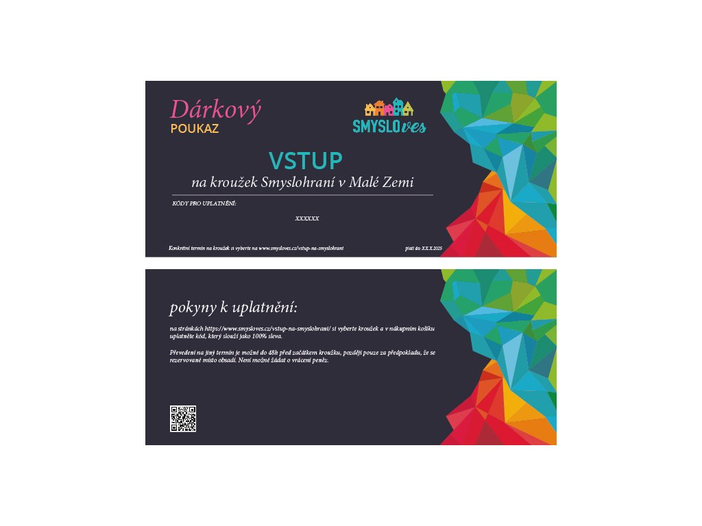 Pokud máte vstup jako dárek, můžete si zvolit dárkový poukaz v PDF bez konkrétního termínu - poukazy nejsou generovány automaticky, poukaz vám na email odešlu do 48h od přijetí platby. Pokud na poukaz pospícháte, dejte mi vědět a domluvíme se.